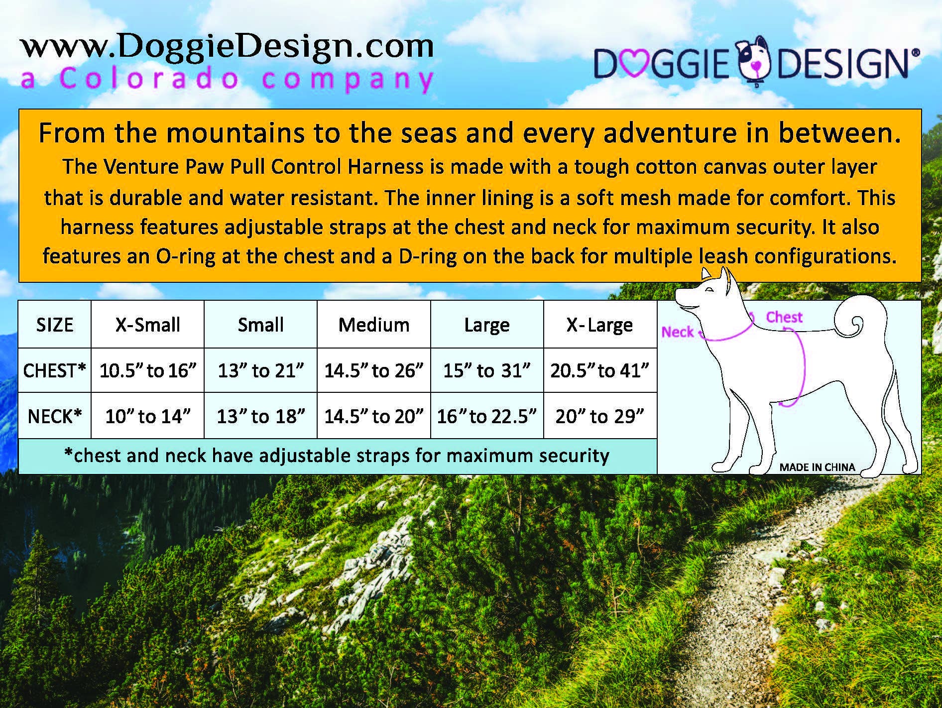We're ready for roughhousing! The Venture Paw dog harness is made with a tough cotton canvas outer layer that is durable and water resistant. The inner lining is a soft mesh made for comfort. This harness features adjustable straps at both the neck and chest for maximum security. It also features an O-ring at the chest and an D-ring on the back for multiple leash configurations. These harnesses are excellent for hiking, herding, or trekking through the urban jungle.